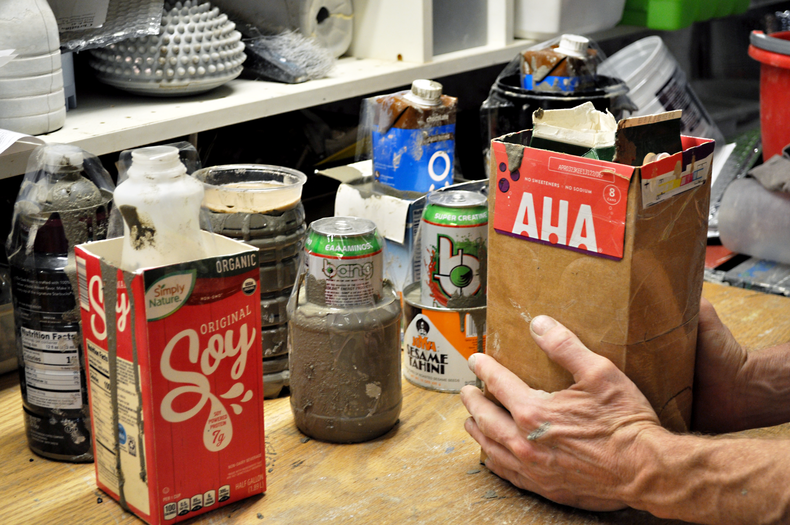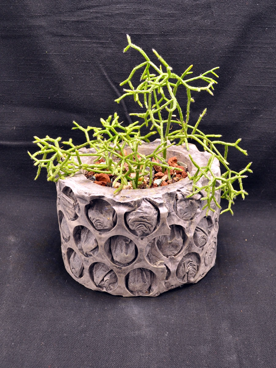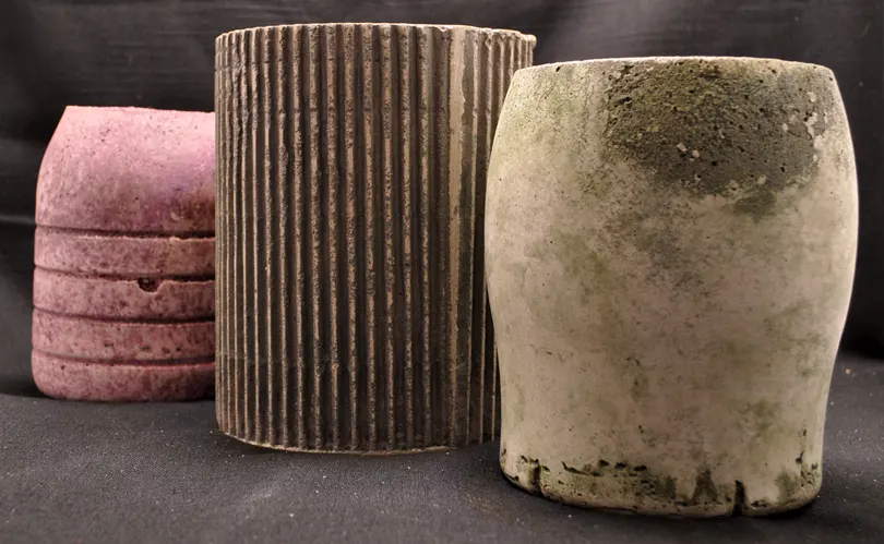 I create handmade concrete pots from recyclables